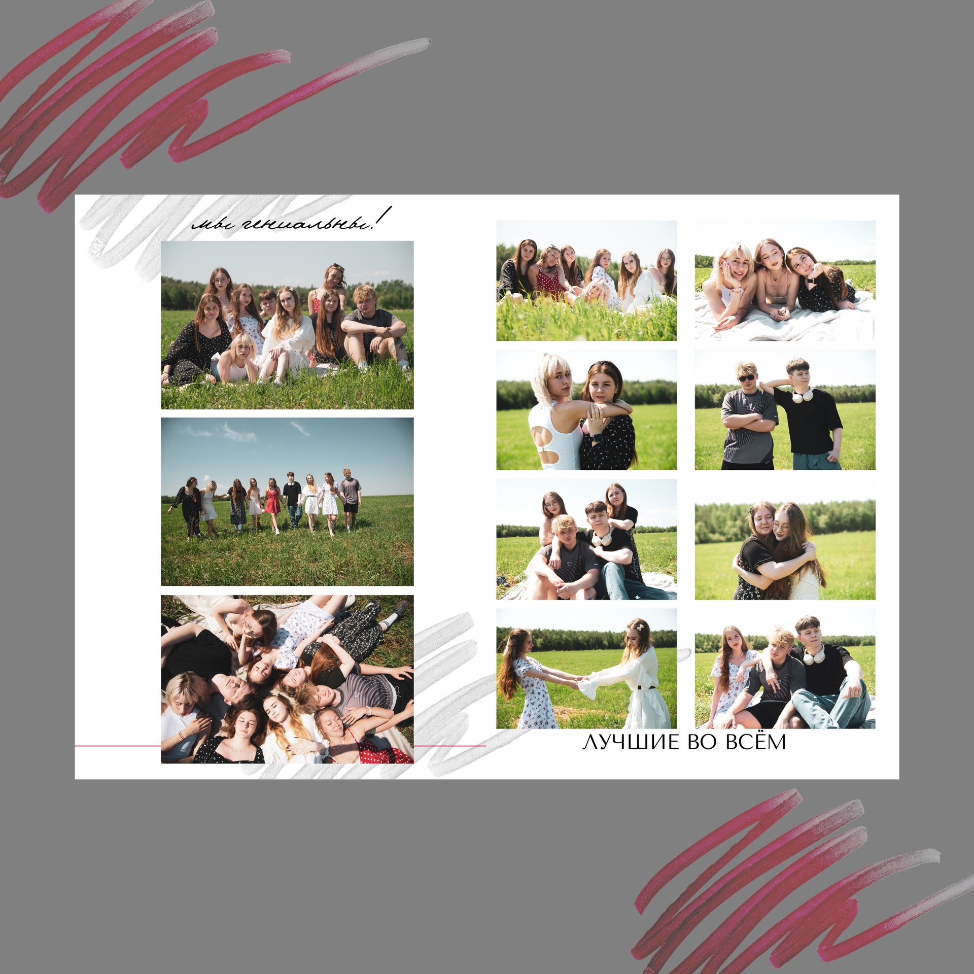 - 4 разворот групповые фото (одинаковый для всех ребят)